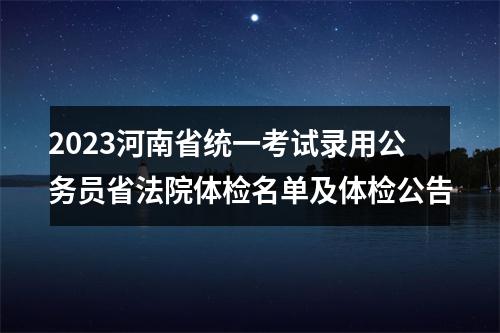 原标题:河南省2023年统一考试录用公务员省法院体检名单及体检公告